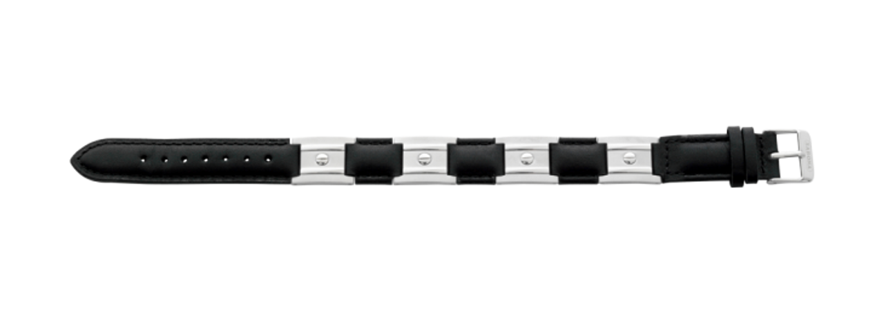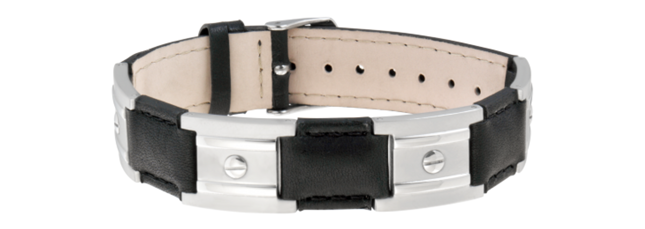 Sabona Black Leather Dress Stainless Nailshead Magnetic Bracelet features: